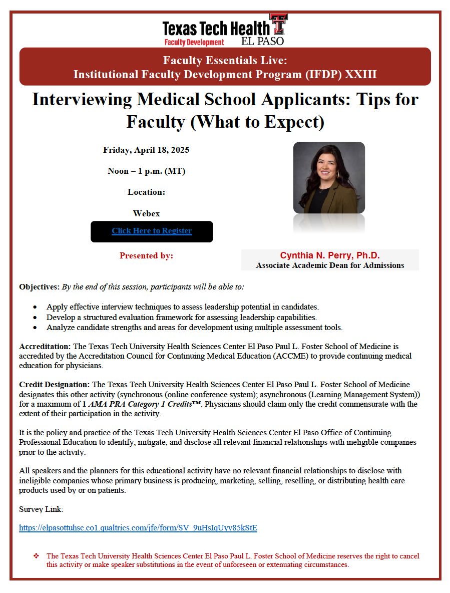 Reserve your spot by e-mailing Tommie Morelos at tommie.morelos@ttuhsc.edu.