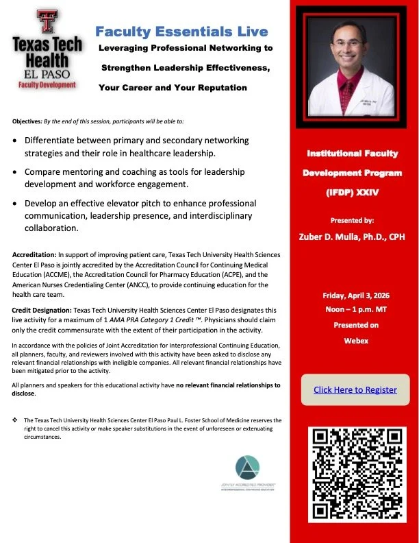 “Leveraging Professional Networking to Strengthen Leadership Effectiveness, Your Career and Your Reputation,” presented by Zuber D. Mulla, Ph.D., CPH