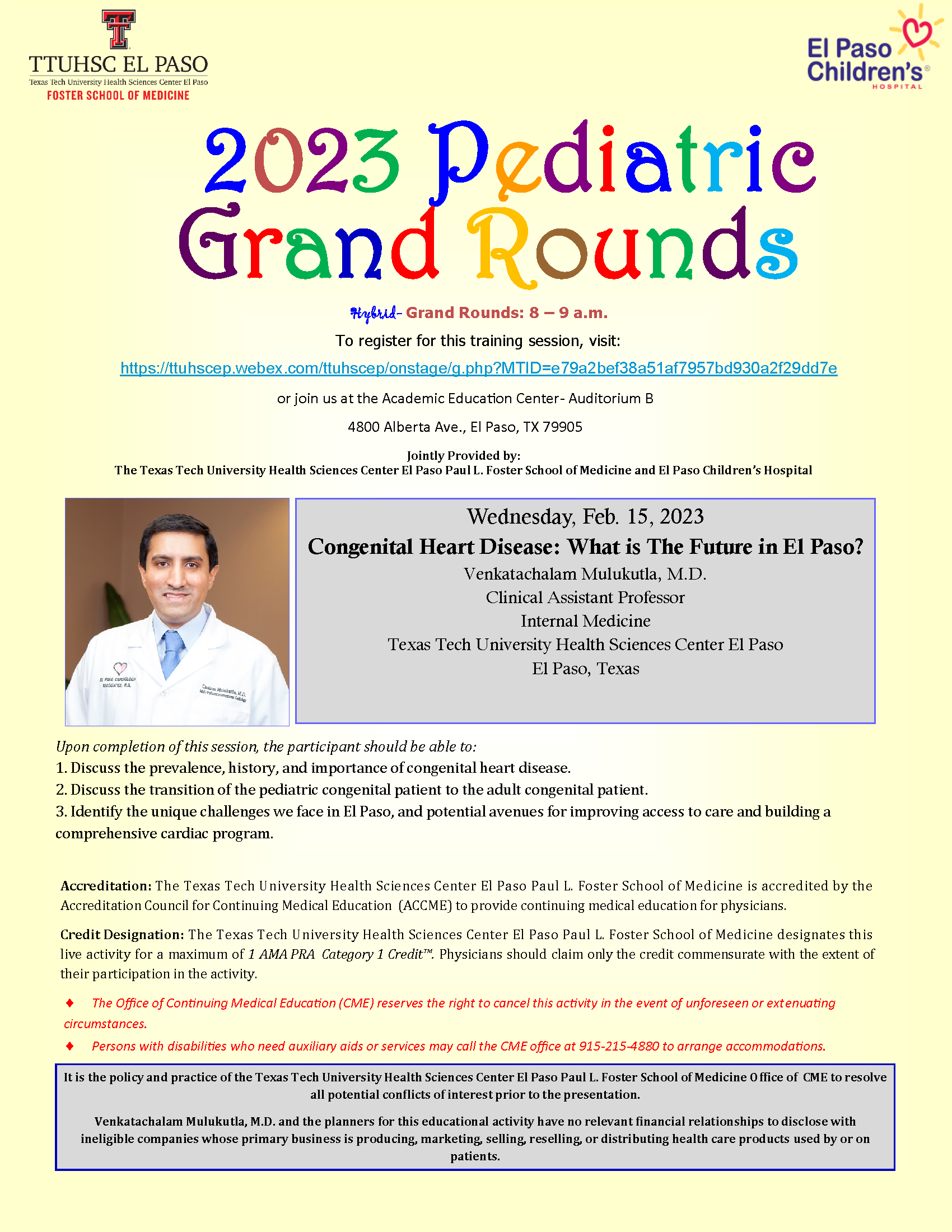 “Congenital Heart Disease: What is The Future in El Paso?” presented by Venkatachalam Mulukutla, M.D.