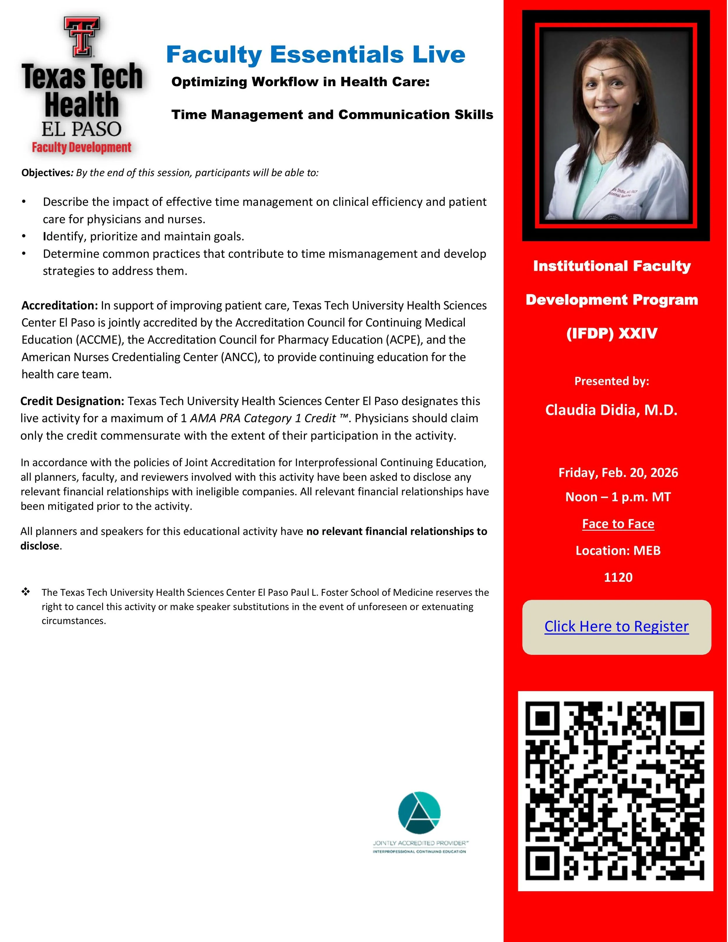 “Optimizing Workflow in Health Care: Time Management and Communication Skills,” presented by Claudia Didia, M.D.