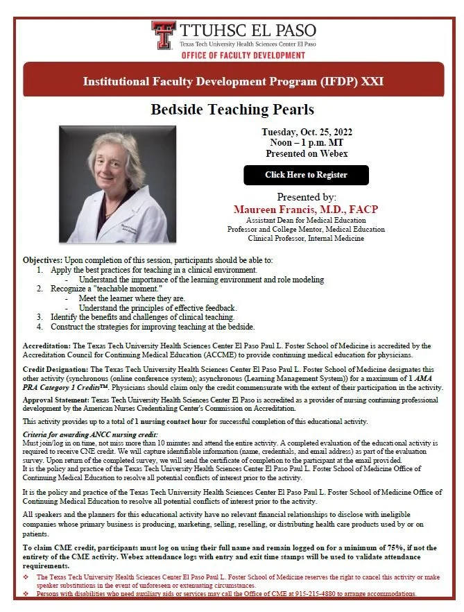 “Bedside Teaching Pearls,” presented by Maureen Francis, M.D., FACP.