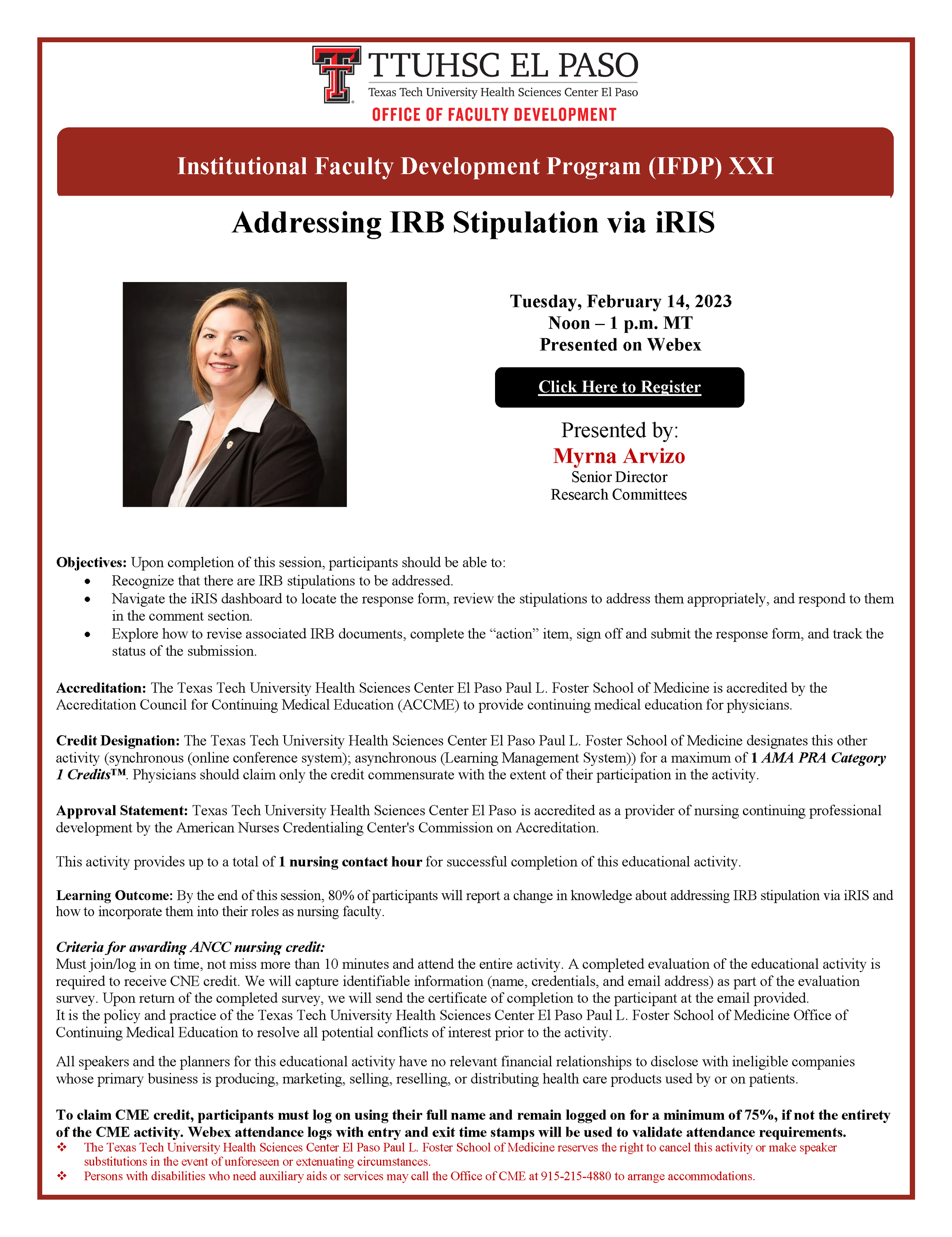 “Addressing IRB Stipulation via iRIS,” presented by Myrna Arvizo.