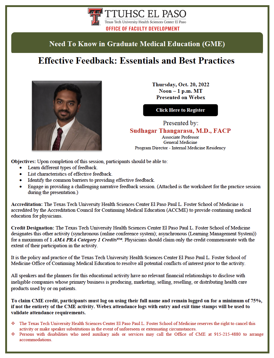 “Effective Feedback: Essentials and Best Practices,” presented by Sudhagar Thangarasu, M.D.