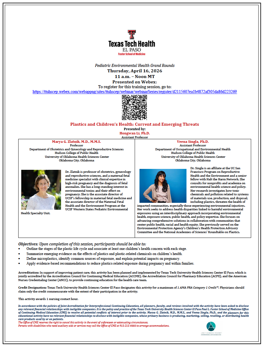 “Plastics and Children’s Health: Current and Emerging Threats,” presented by Marya G. Zlatnik, M.D., M.M.S., and Veena Singla, Ph.D.