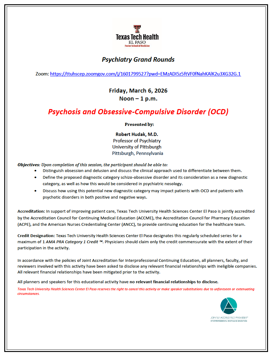 "Psychosis and Obsessive-Compulsive Disorder (OCD)," presented by Robert Hudak, M.D.