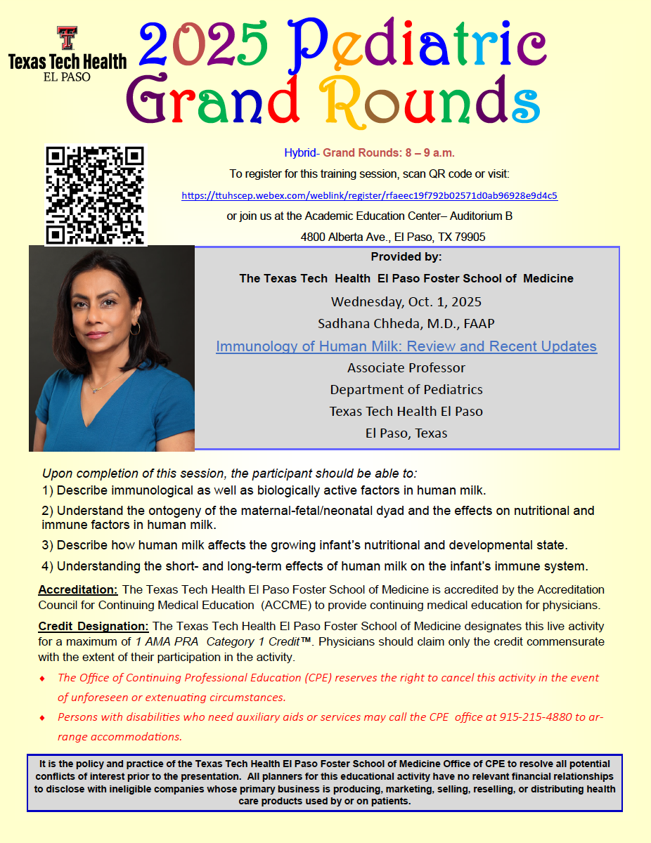 "Immunology of Human Milk: Review and Recent Updates," presented by Sadhana Chheda, M.D., FAAP.