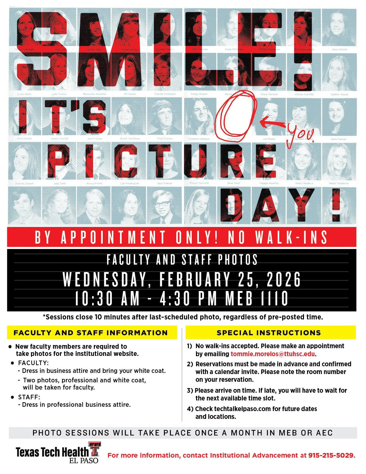 Faculty and Staff Photo Day - Wednesday, Feb. 25, 2026