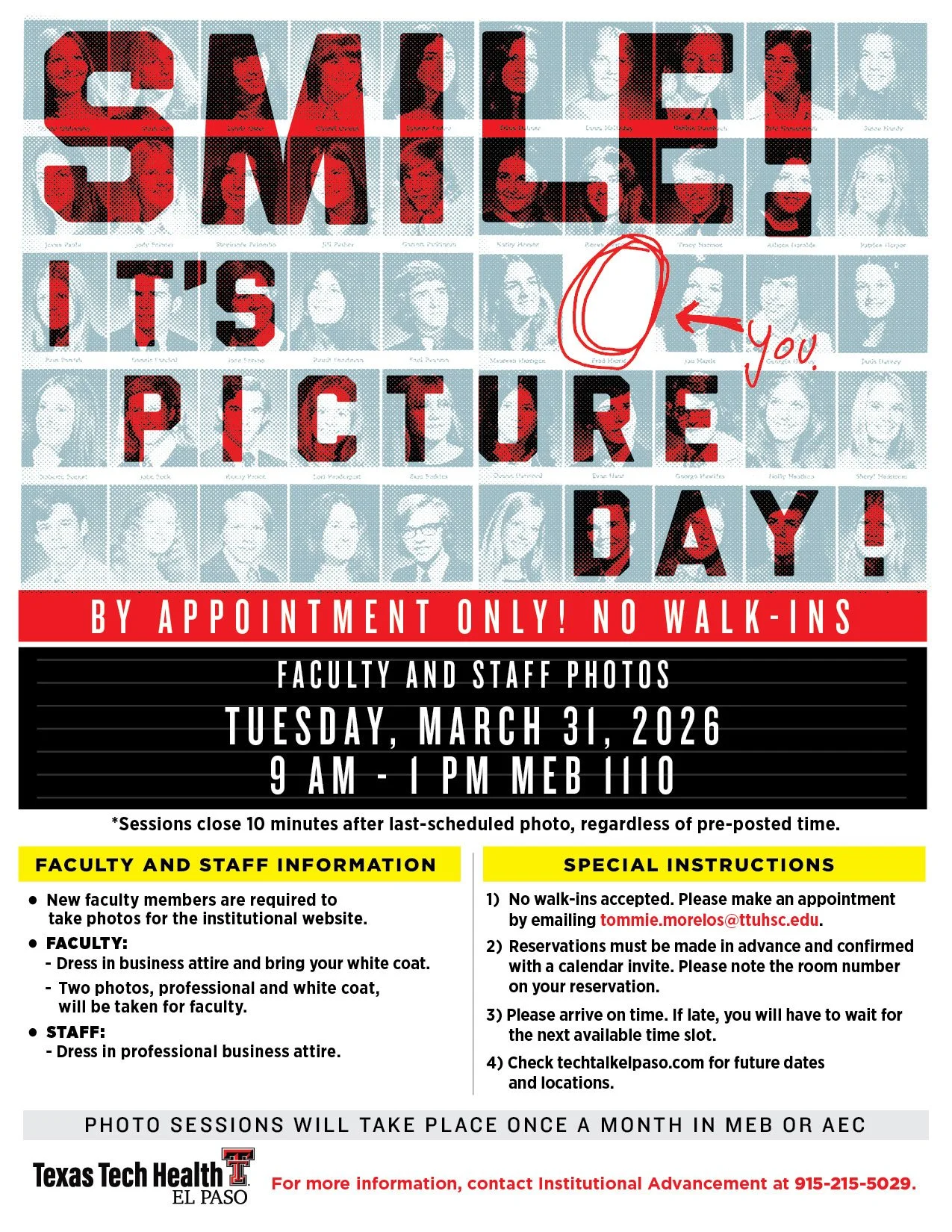 Faculty and Staff Photo Day - Tuesday, March 31, 2026