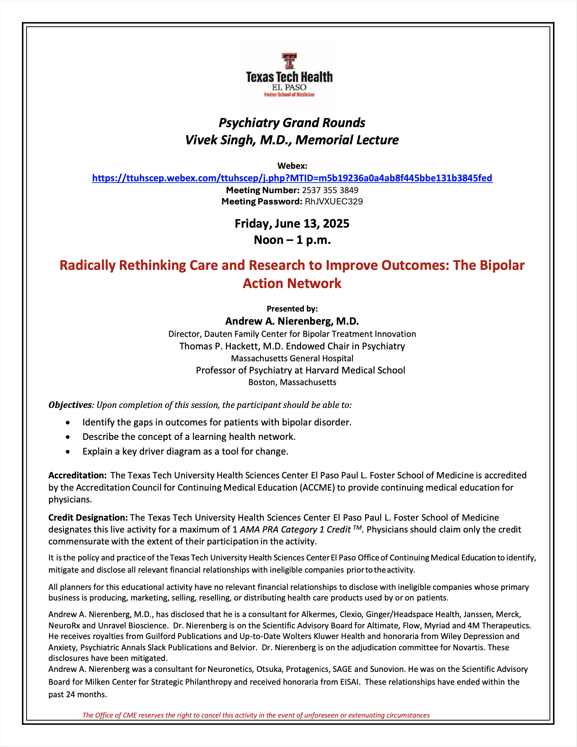 “Radically Rethinking Care and Research to Improve Outcomes: The Bipolar Action Network,” presented by Andrew A. Nirenberg, M.D.