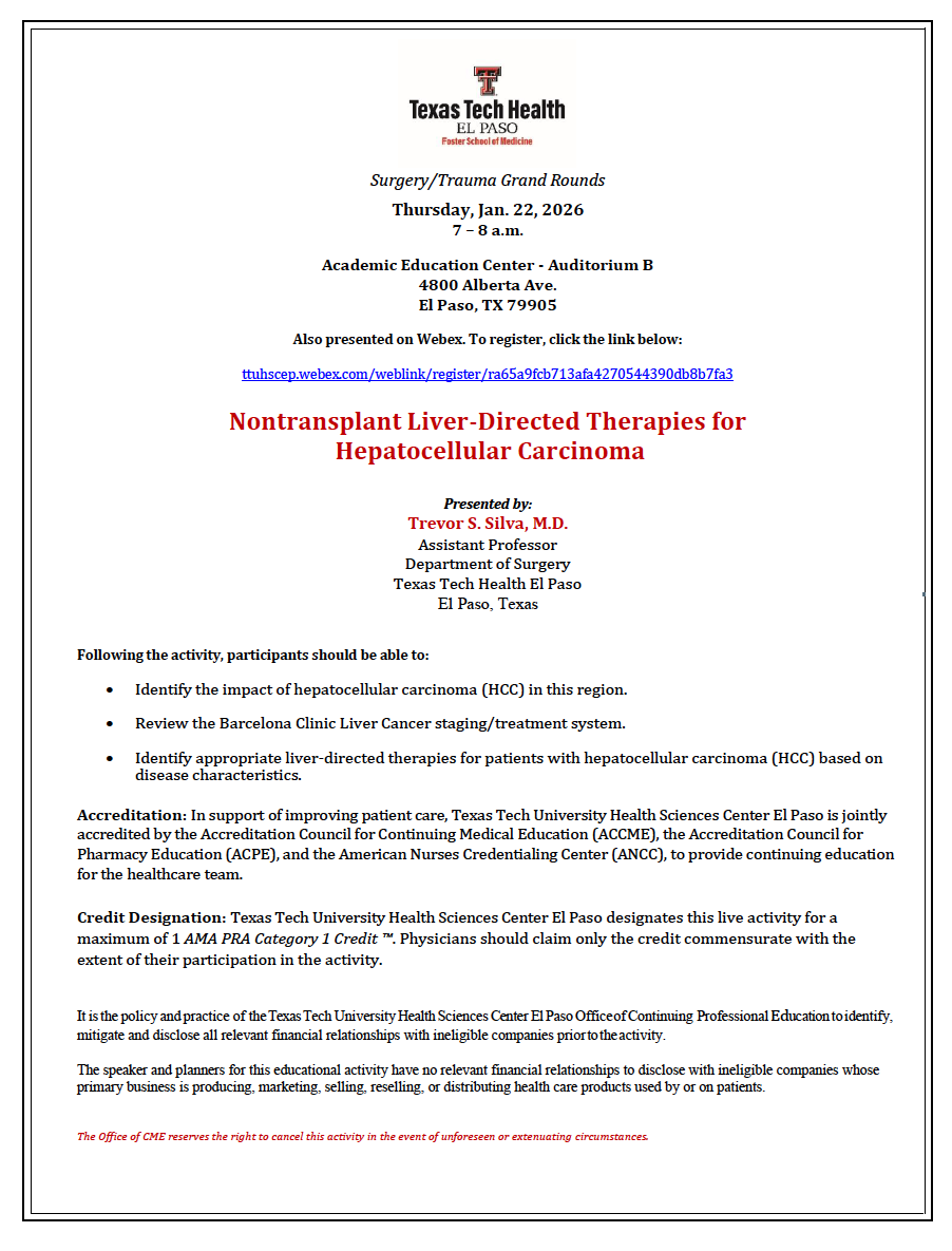 Location: Academic Education Center - Auditorium B, 4800 Alberta Ave., El Paso, TX 79905